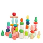 40PCS Montessori Wooden Stacking Rocks Toys, Baby Toddler Interactive Toys