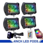 4PCS 4INCH LED Pods Work Light BAR Multi-Color Chasing RGB Halo Strobe Bluetooth