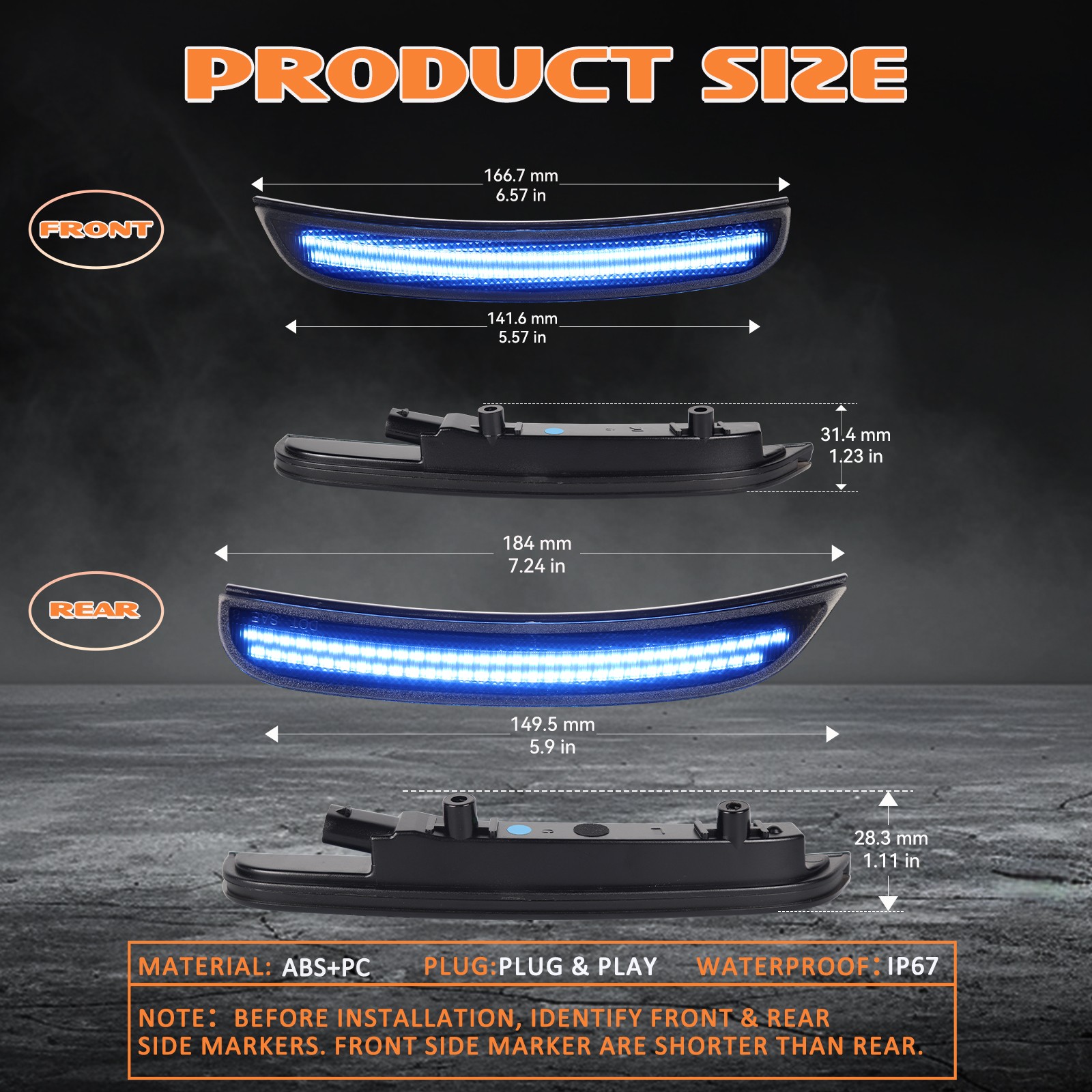 📌 High-Power LED Chips: Each front and rear side lamp is powered by 2-row high-power led chips, delivering a super-bright lighting output that enhances both safety and style. Enhance safety and vehicle appearance.