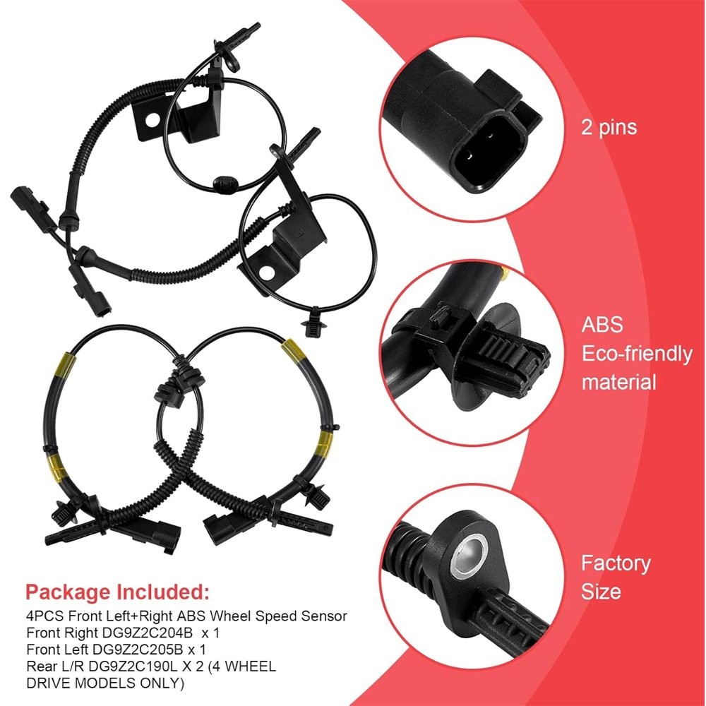 Package Includes: 2 pcs front ABS wheel speed sensors 2 pcs rear ABS wheel speed sensors