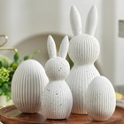 White Bunny and Egg Figurine Set for Modern Easter Decor, 4Pcs Resin Easter R...
