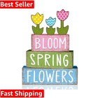 6Pcs Spring Tabletop Decorations Colorful Tulip Wooden Block Signs Rustic Pas...