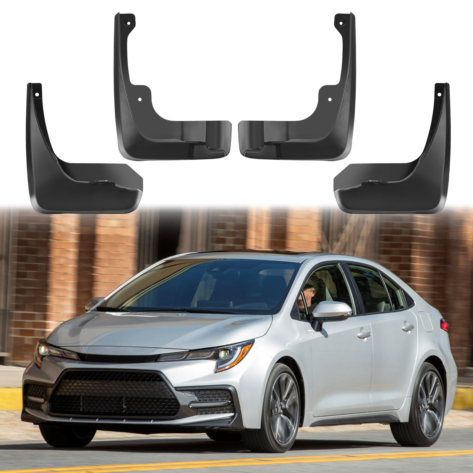 What You Will Get: 4pcs mudflaps behind front and rear wheel, and come with mud flaps accessories. The mud flaps for cars' contoured design complements vehicle lines and its heavy-duty black plastic construction resists cracking