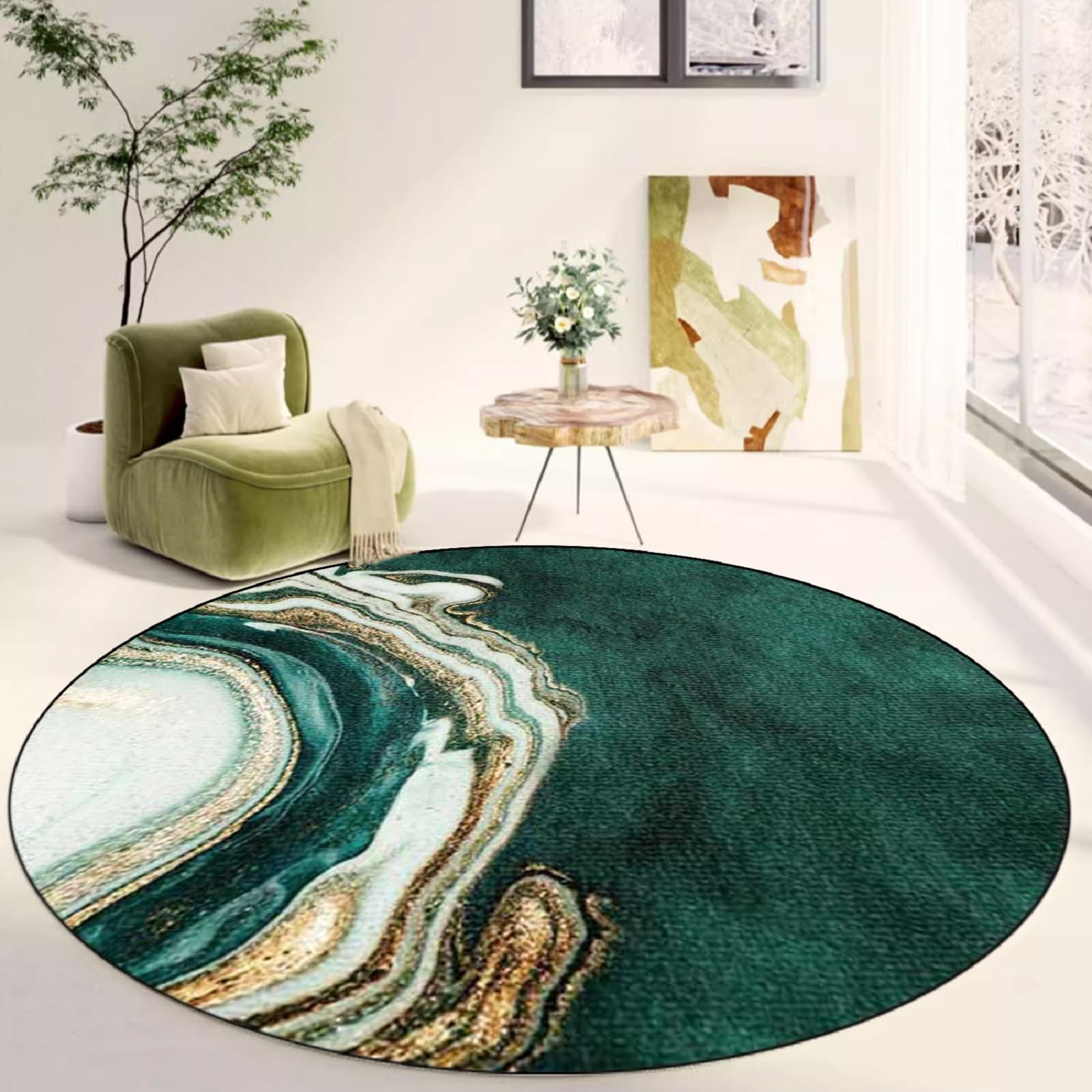 Multiple scenarios: Our round emerald green marble area rug can be used in bedroom;living room;dining room;kitchen;hallway;balcony;entryway;study room;sofa;etc.We have many different size rug to help decorate your room. Sizes range from 2 ft to 6 ft