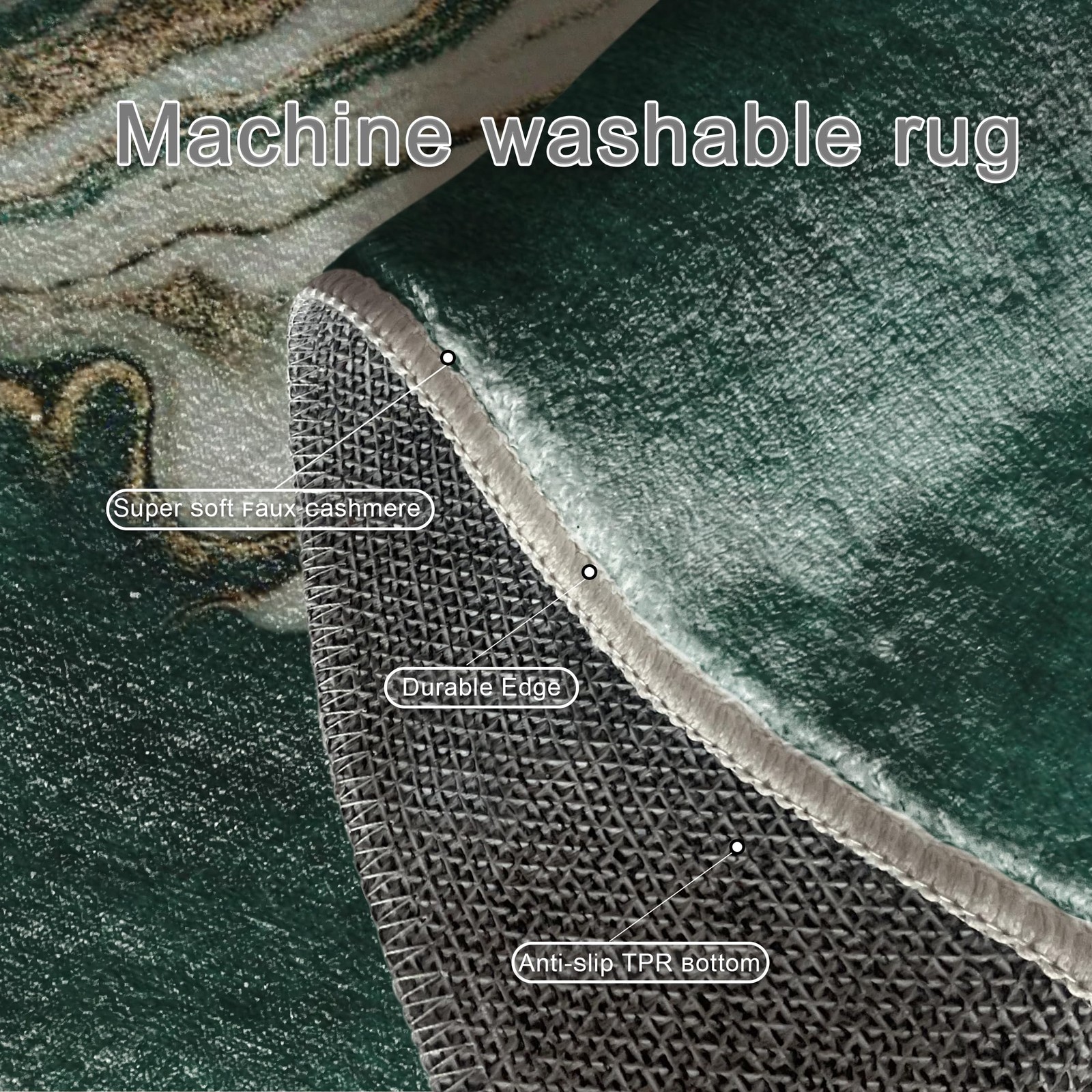 Non-Slip back: Our carpets feature a durable non-slip bottom.The bottom enhances friction, preventing the carpet from sliding on the floor.Please note that the non-slip effect may be reduced if there is water under the carpet, so keep the floor dry