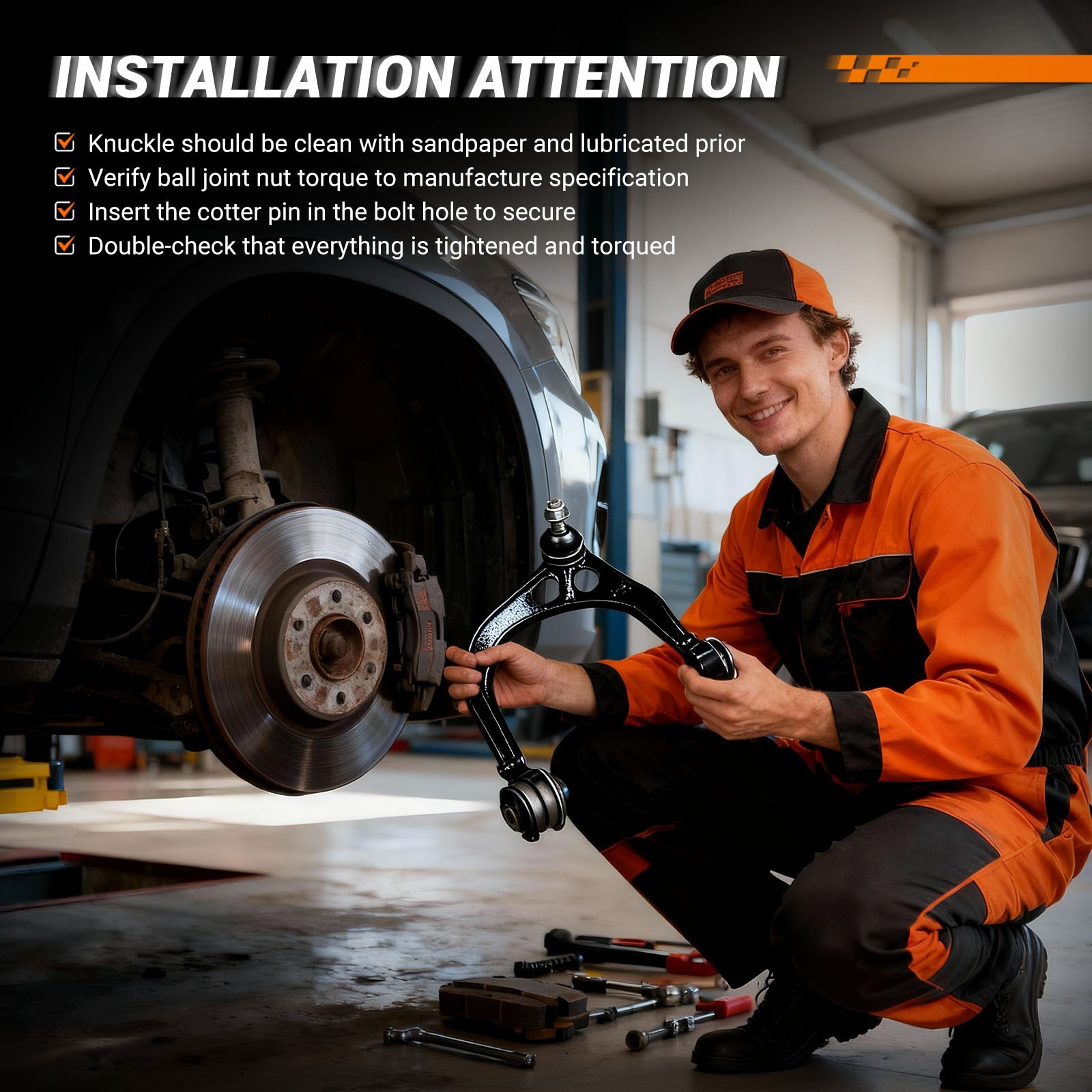 - Regular maintenance checks are advised to ensure optimal performance of the control arms.