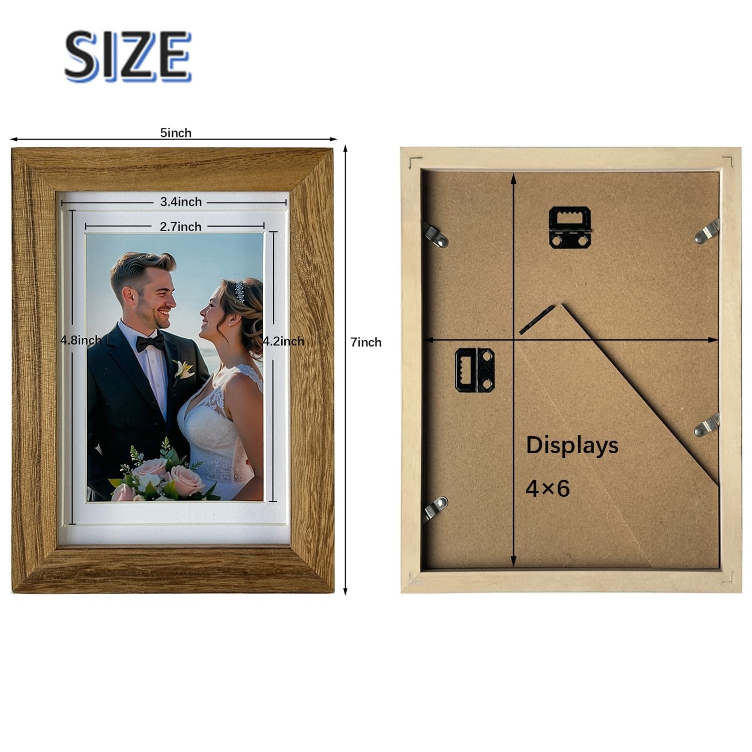 5x7 Picture Frame Set of 2, 5 x 7 Wood Photo Frames with Mat for 4x6, Rustic ...
