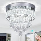Modern Dimmable Crystal Chandelier, LED Flush Mount Ceiling Light, Raindrop C...