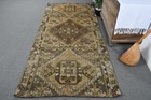 Turkish Rug, 4x8,9 ft Area Rug, Brown Bordered Wool Vintage Rug