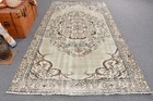 Turkish Large Rug 5,3x9,8 ft, Vintage Beige Plants & trees Wool Rug