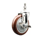 5 Inch SS Maroon Polyurethane Swivel 12mm Threaded Stem Caster Brake SCC