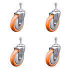 5 Inch SS Orange Polyurethane Wheel Swivel ½ Inch Threaded Stem Caster Set SCC