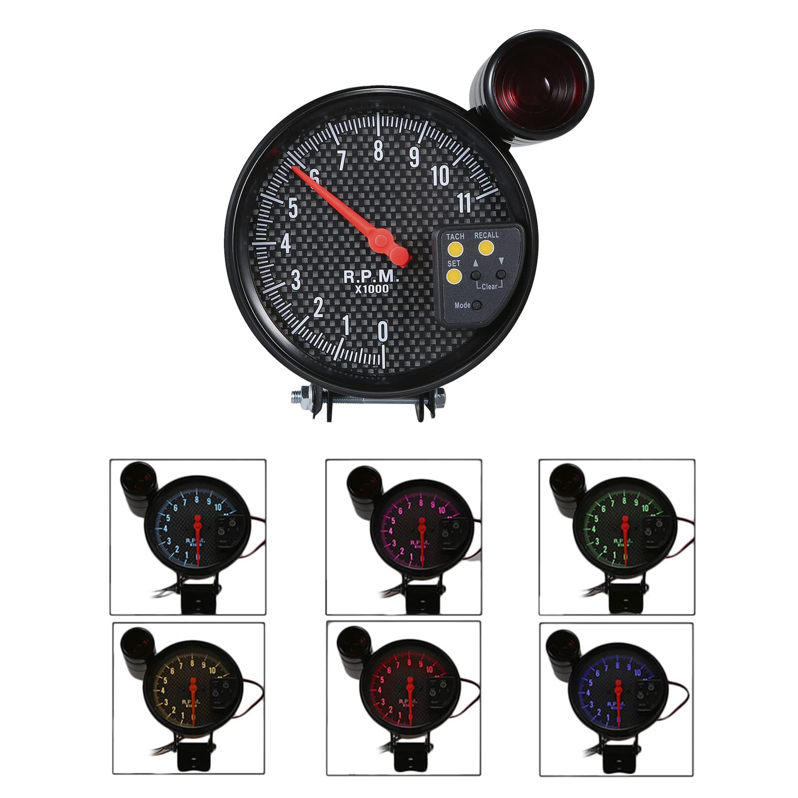 5 Inch Tachometer Gauge Carbon Fiber 7 Colors Backlight, 0-11,000 RPM Measure...