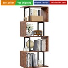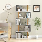 5 Tier Bookshelf, S Shaped Geometric Bookcase, Narrow Freestanding Display Sh...
