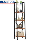5-Tier Narrow Bookshelf Tall Ladder Display Shelf Rustic Wood Metal Frame Brown
