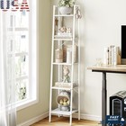 5-Tier Corner Shelf Glass Steel Frame Storage Unit Home Organizer Book Display
