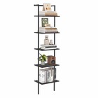 Black 5Tier Ladder Shelf Wall Mounted Bookshelf Metal Frame Open Storage