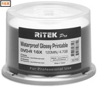 50-Pak RITEK PRO Waterproof GLOSSY White Inkjet Hub 16X 4.7GB DVD-R's