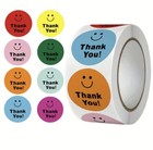 500 pcs Sticker Roll 1 Inch Color Cartoon Happy Smile Thank you Self Adhesive