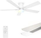 52 Inch White Flush Mount Ceiling Fan with Light, 3CCT Dimmable LED, 6-Speed ...