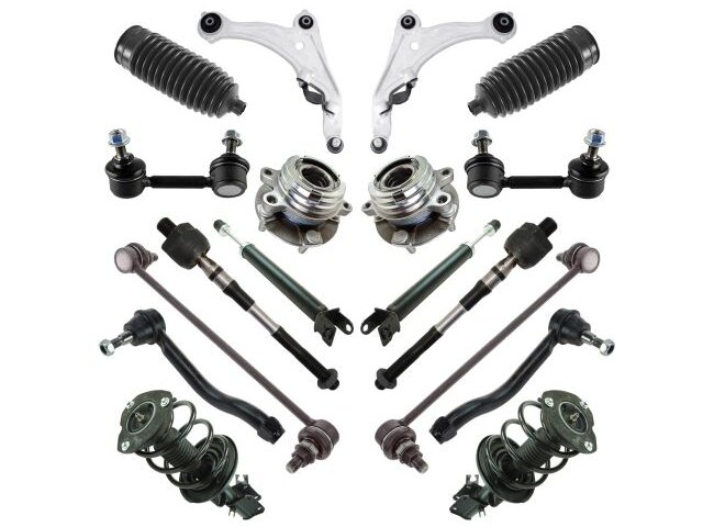 Package Contents: (2) Front Lower Control Arms with Ball Joints; (2) Front Sway Bar Links; (2) Rear Shock Absorbers; (2) Front Strut & Spring Assemblies; (2) Front Wheel Bearing & Hub Assemblies; (2) Rear Sway Bar Links; (2) Front Steering Rack & Pinion Bellows; (4) Front Tie Rods