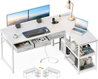 53 Inch L Shaped Computer Desk with Drawers White AODK Corner Power Outlets