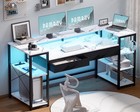 58 Inch Computer Desk with Monitor Stand and Shelves Gaming Desk with LED Lig...