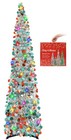 Christmas Pop Up Tree with 50 LED Lights 5FT Collapsible Tinsel Pencil Tree E...