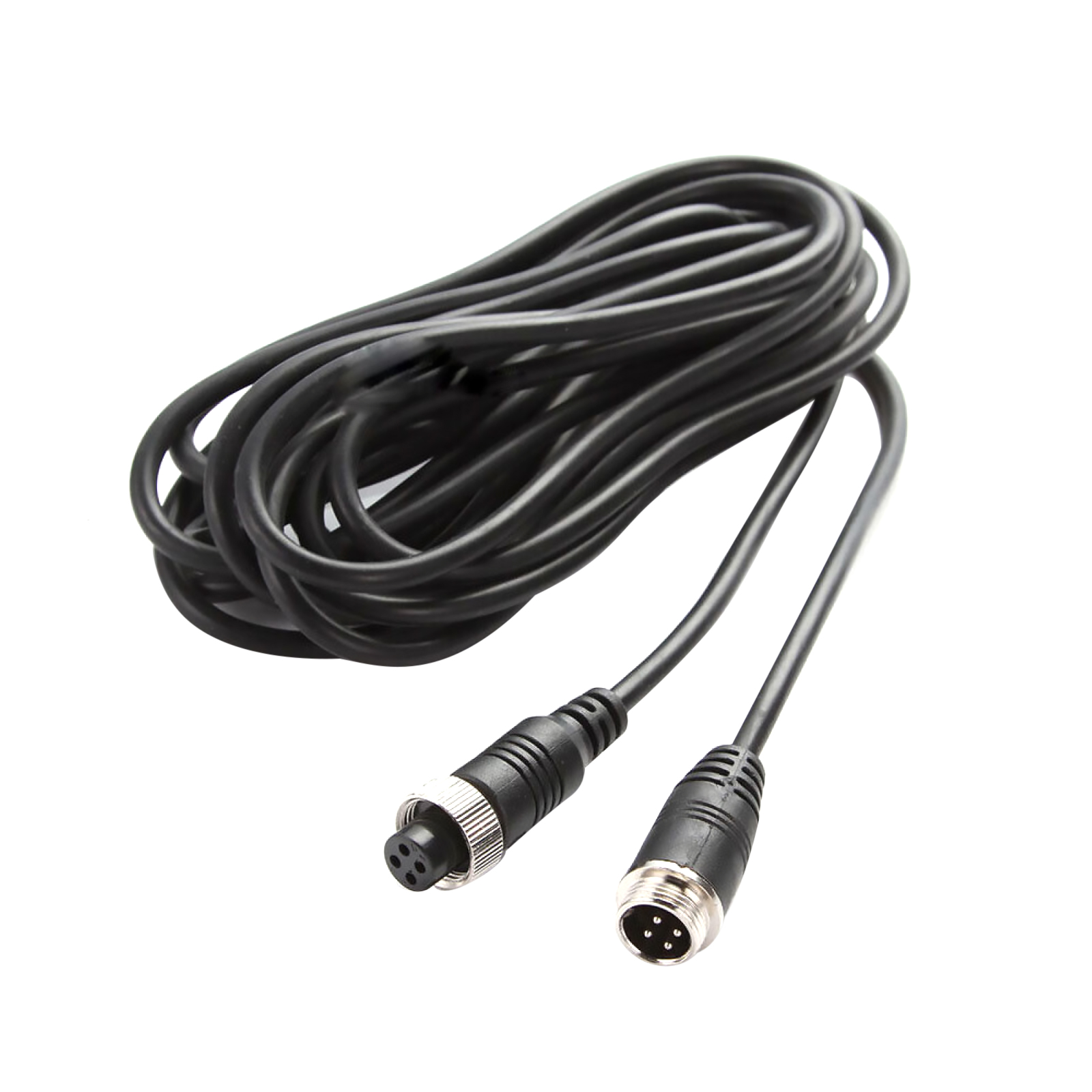 Male to Female 4-Pin Aviation Video Cable (5M 16FT), transmits video and power in one cable.Widely used in truck/trailer/bus/motorhome/long vehicle for connecting parking assistance, surveillance CCTV system.