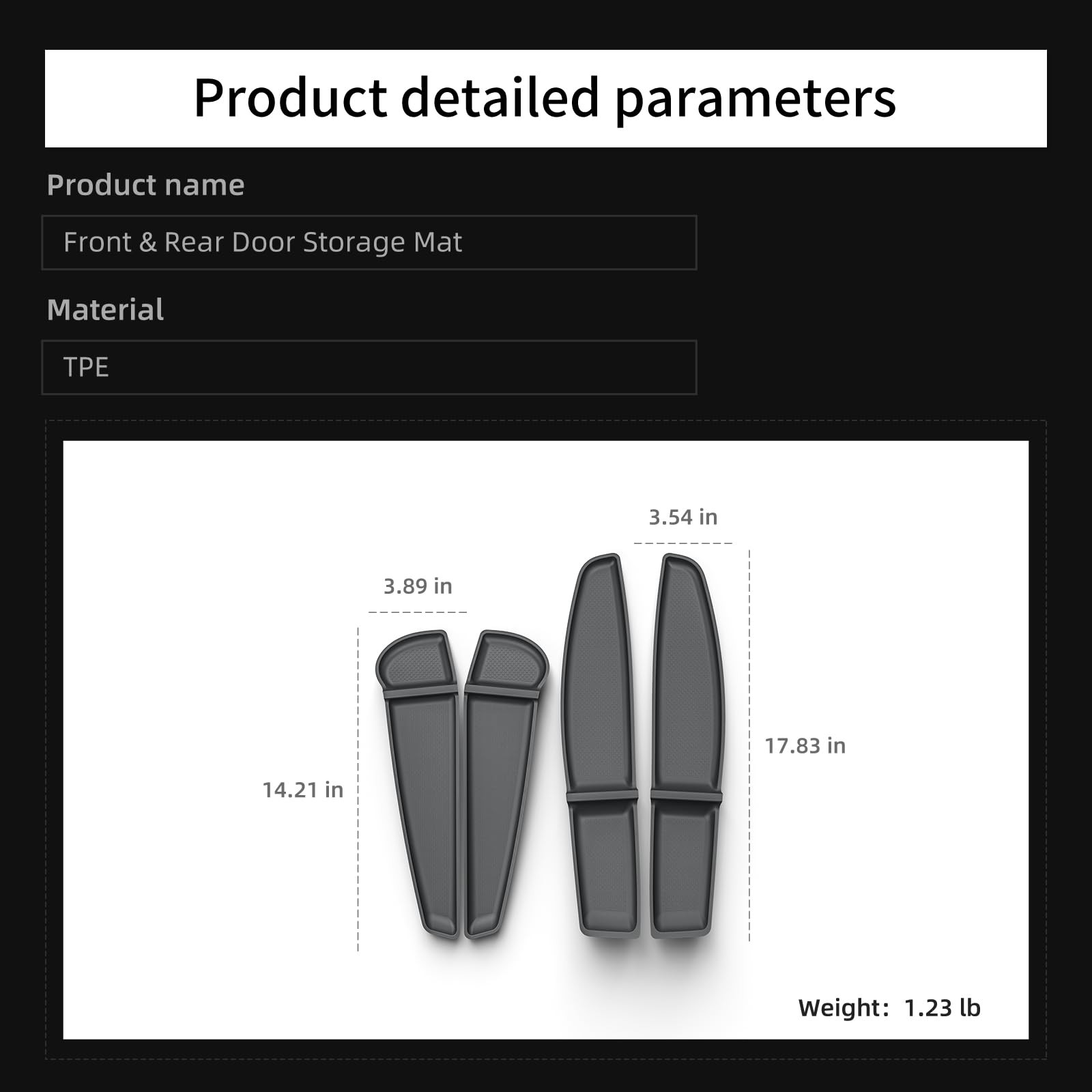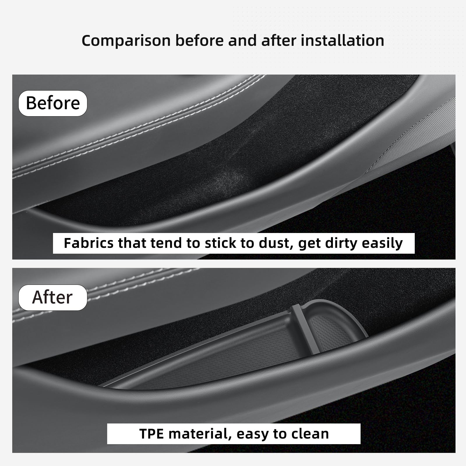 Easy to install: The front and rear door storage mats and center console cup pad require no tools for installation—simply place them in the designated areas