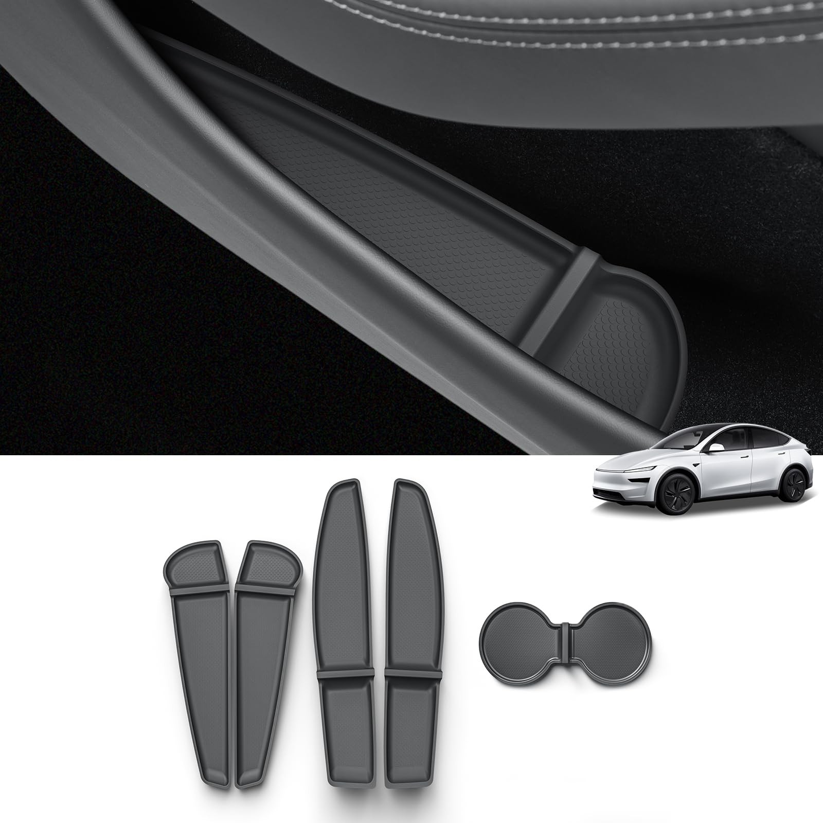 Custom Vehicle Design: Front& Rear Door Side Pocket Storage Mat & Center console cup pad for Tesla Model Y Juniper 2025 2026