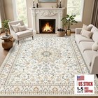 5x7 Area Rug Living Room Rugs - Washable Boho Vintage Floral Large Soft Non