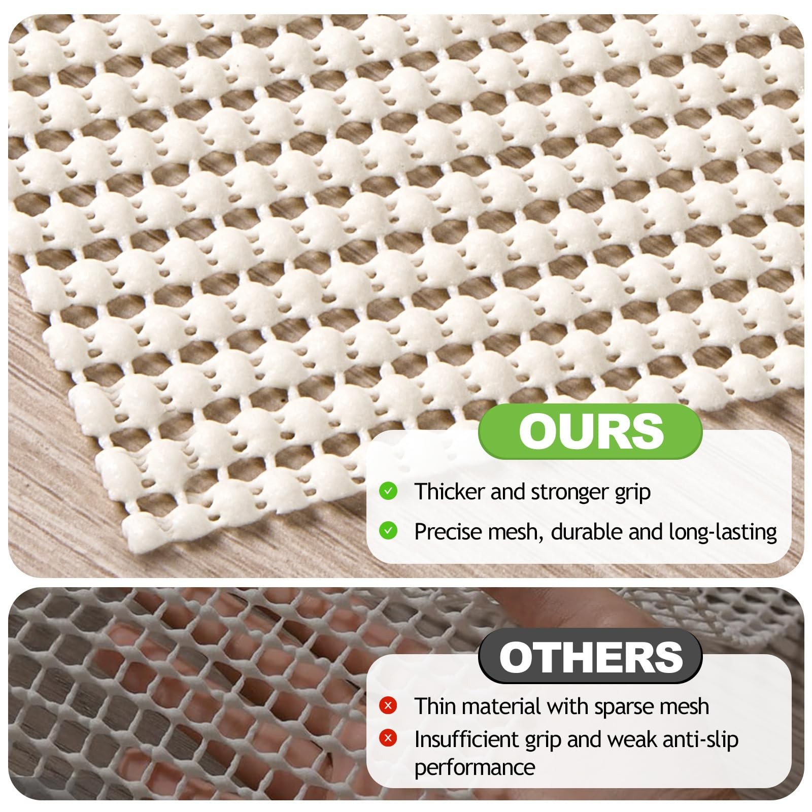 Dual-Sided Grip Technology: Advanced double-surface traction firmly locks rugs and floors, eliminating slipping and bunching