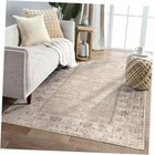 Vintage Bordered Area Rug, Beige 5x7 Washable Living Room Rug Non Slip, Thin