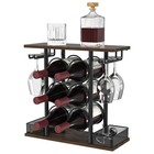 Mkono Wall Mounted Wine Rack - Bottle & Glass Holder Wood Rustic Floating Racks