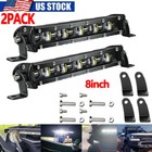 2pcs 8inch LED Work Light Bar Single Row Spot Flood Offroad Driving ATV 4WD SUV