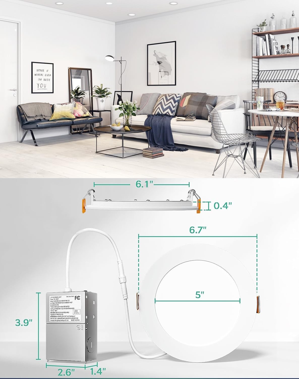 - Easy Install The low profile recessed lighting is suitable for retrofit and new decoration: Cut a hole in ceiling with Using a 6.1 inch (155mm) diameter hole opener; Connect the Jbox to the cable; Use spring clip to fix it on the ceiling. Hassle-free, the installation can be completed in minutes.