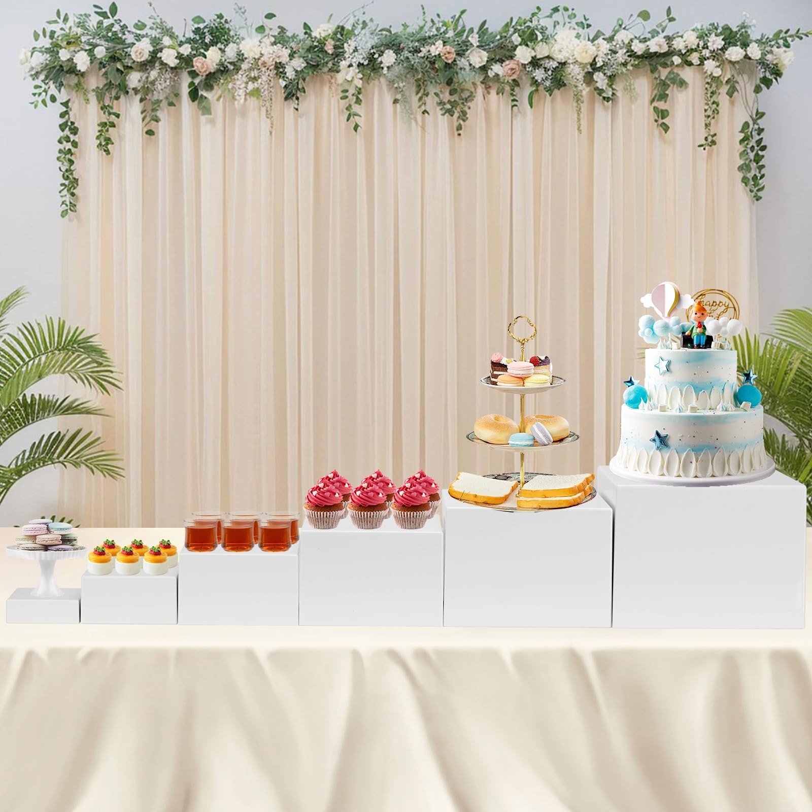 【Versatile and Multi-Functional】: Ideal for use in a wide range of settings, from weddings and parties to catered events and home dining. These white food risers can help you create a professional and organized display for any occasion. Beyond food presentations, the catering supplies buffet display are also suitable for displaying a variety of items, including jewelry, potted plants, art pieces, and decorative objects.