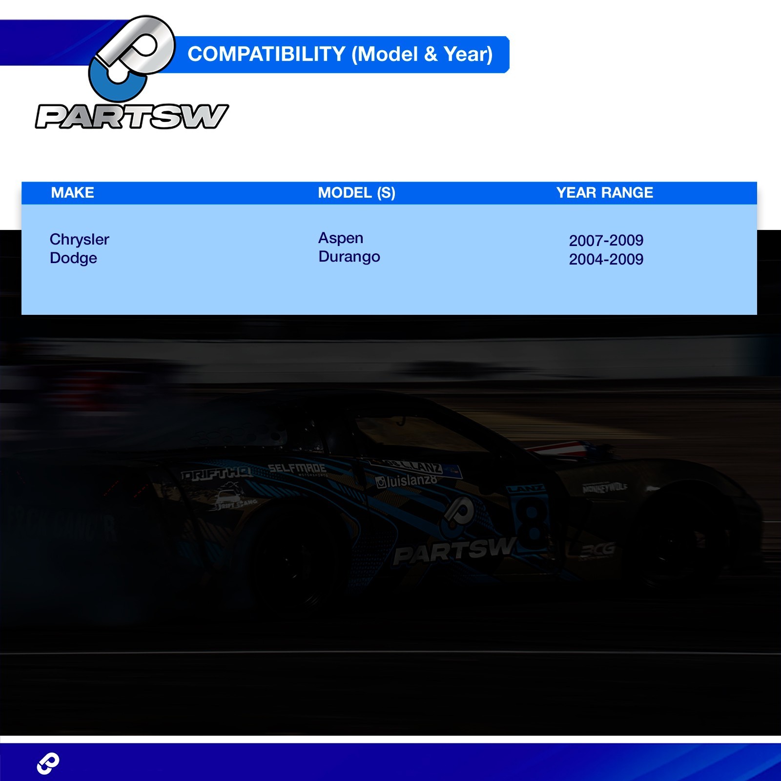 | Chrysler | Aspen | 2007-2009 | with 15mm Thread Tie Rods |
