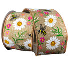 Bee Daisies Pink Flowers 2.5" by 2 yards Wired Ribbon Spring Summer Buy Early