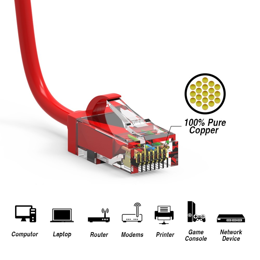 6' Feet Red RJ-45 Cat6 Slim Network Patch Cable UTP Copper Wire Gold Plated 28AWG