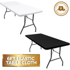 6 Ft Plastic Folding Table cloth for Indoor/Outdoor Dining & Parties Stretch Fit