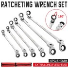 6PC 8-19mm Metric Flexible Head Ratcheting Wrench Extra Long Double Box End Set