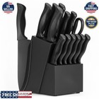15 Piece High Carbon Stainless Steel Kitchen Knife Set Block Sharpener Black