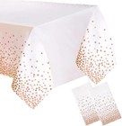 2 Paaging White and Rose Gold Plastic Tablecloth, 54 inch x108 inch