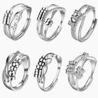 6pcs Women Anxiety Spinner Rings Fidget Rings W Beads Stress Relief Adjustable