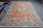 Turkish Vintage Rug 6,3x9,9 ft, Orange Moroccan Wool Rug