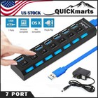 7 Port USB 3.0 Hub Splitter Adapter High Speed For PC Laptop Mac Desktop On/Off