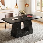 63 Inch Rectangular Dining Table for 4-6 People Black Modern Faux Marble