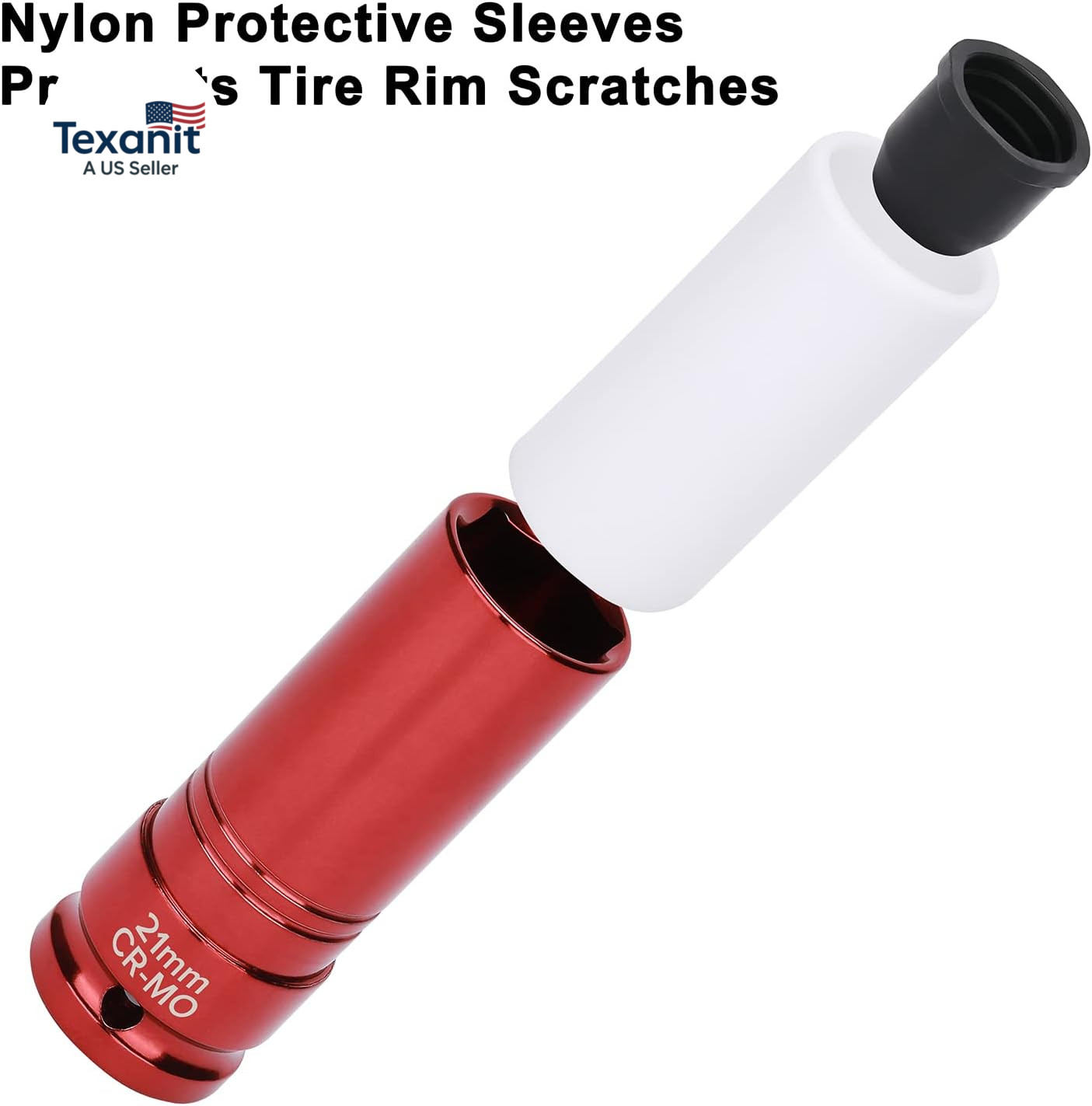 Nylon sleeves and rubber insert can protect the tire rim and lug nuts from scratches.